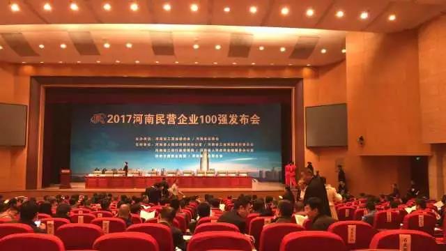 由河南省工商業(yè)聯(lián)合會及河南省總商會聯(lián)合舉辦的“2017河南民營企業(yè)100強發(fā)布會”于2017118日上午在鄭州市黃河迎賓館隆重舉行。