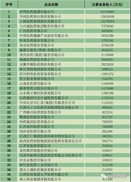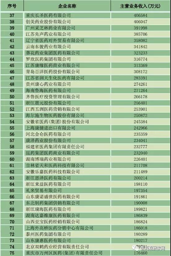 2017年藥品批發(fā)企業(yè)主營業(yè)務(wù)收入前100位排序