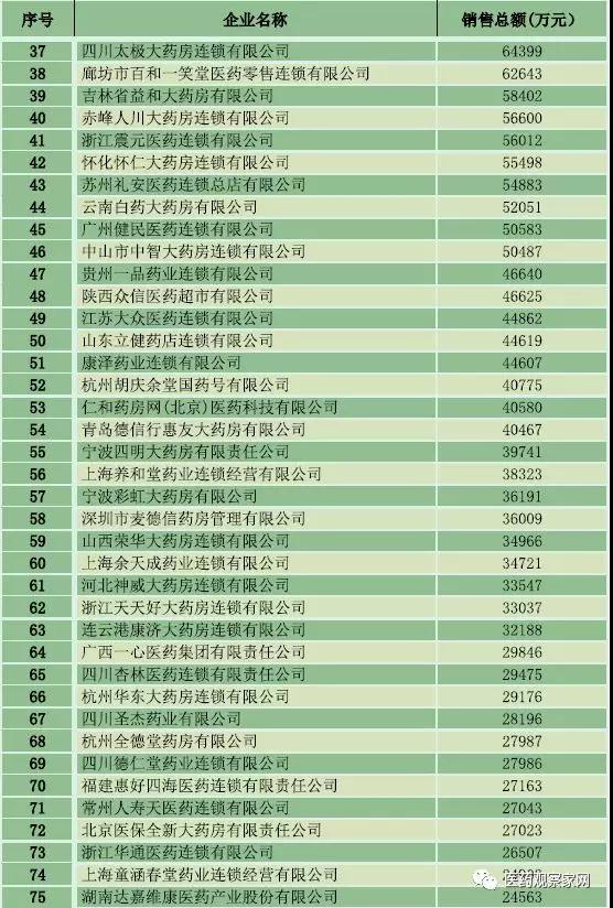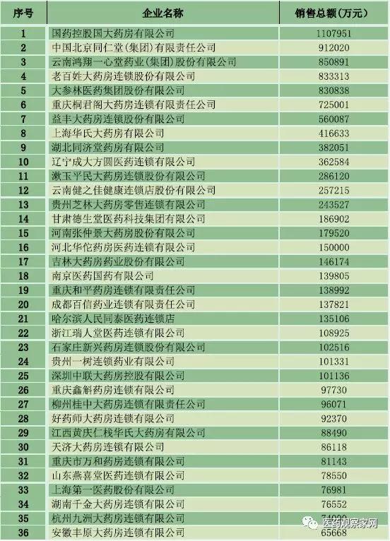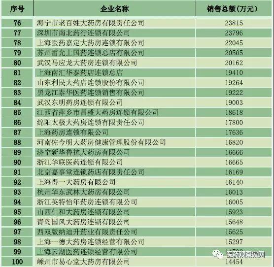2017年藥品零售企業(yè)銷售總額收入前100位排序