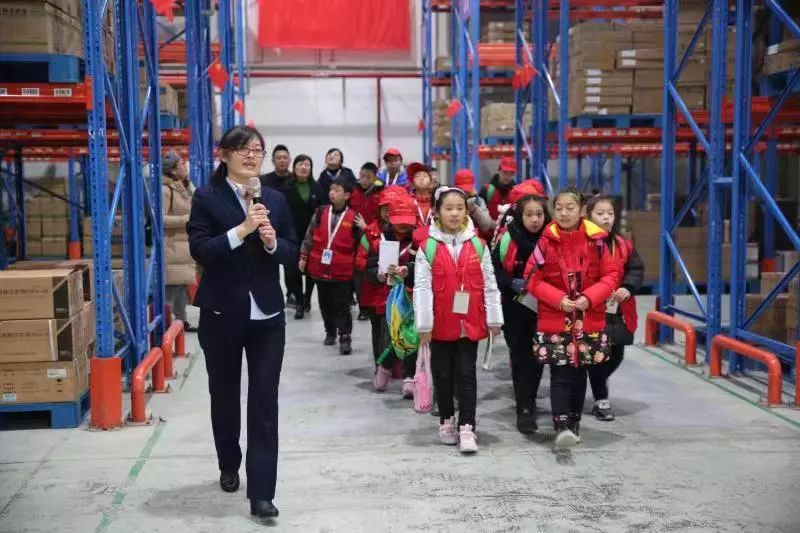在倉庫二樓,小記者團看到了現(xiàn)代化的醫(yī)藥物流系統(tǒng),沿著自動化運輸線,他們了解了電子標(biāo)簽揀選系統(tǒng)、箱式運輸系統(tǒng)、拆零貨架系統(tǒng)。每一個知識點,他們都透漏著求知若渴的渴望的眼神。
