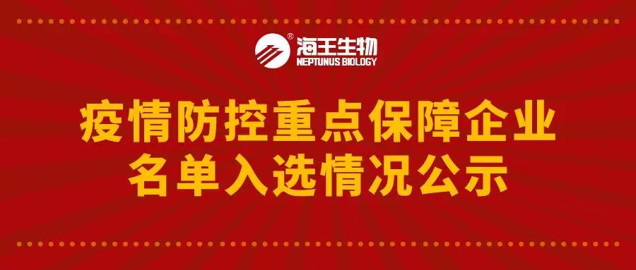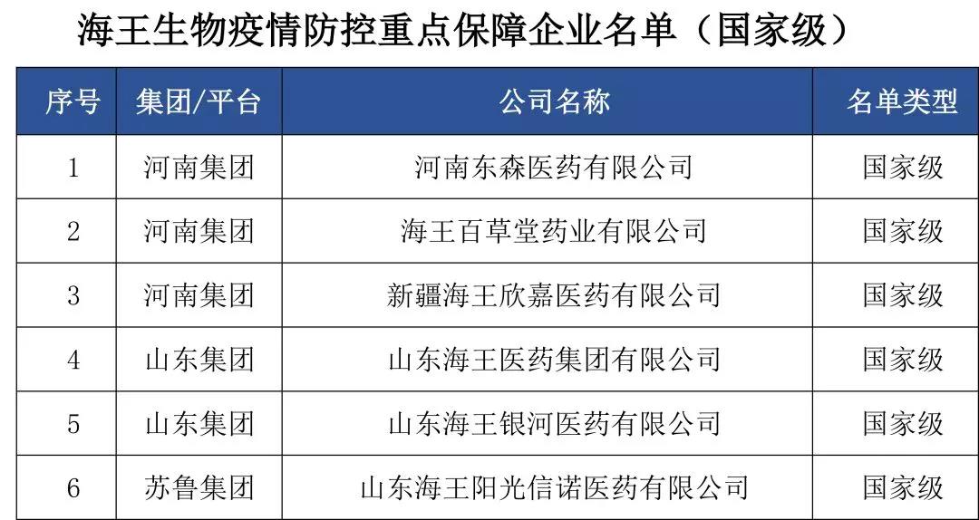 近日,全國(guó)及各地區(qū)疫情防控重點(diǎn)保障企業(yè)名單陸續(xù)公布。截至3月10日,海王生物本部入選省級(jí)“疫情防控重點(diǎn)保障企業(yè)名單”,6家子公司入選國(guó)家級(jí)“疫情防控重點(diǎn)保障企業(yè)名單”,34家子公司入選地區(qū)性“疫情防控重點(diǎn)保障企業(yè)”名單(其中省級(jí)22家,市級(jí)12家)。