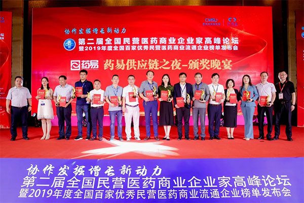 2020年9月11日,由全國工商聯(lián)醫(yī)藥業(yè)商會醫(yī)藥商業(yè)分會主辦的第二屆全國民營醫(yī)藥商業(yè)企業(yè)家高峰論壇暨2019年度全國百家優(yōu)秀民營醫(yī)藥商業(yè)流通企業(yè)榜單發(fā)布會于成都舉辦,評選出了全國百家優(yōu)秀民營醫(yī)藥商業(yè)流通企業(yè)、十大年度人物、拓進人物等獎項,本次評選活動邀請了全國各省市的商協(xié)會、行業(yè)內學者、企業(yè)家、支持單位嘉賓為民營醫(yī)藥企業(yè)發(fā)展助力。