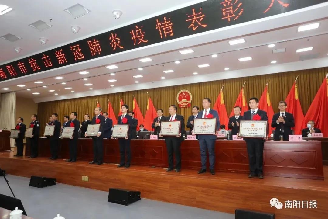 大會宣讀了《中共南陽市委、南陽市人民政府關于表彰南陽市抗擊新冠肺炎疫情個人和集體的決定》《中共南陽市委關于表彰南陽市共產(chǎn)黨員和南陽市基層黨組織的決定》《南陽市新冠肺炎疫情防控指揮部關于對抗擊新冠肺炎疫情做出突出貢獻的愛心企業(yè)愛心人士表揚的決定》。張文深、霍好勝、曾垂瑞等為受表彰的共產(chǎn)黨員代表、愛心企業(yè)和愛心人士代表頒獎。來自全市各條戰(zhàn)線的抗疫英雄代表相聚在南陽會議中心,他們身戴紅花,登上領獎臺,接受全市人民的敬意和禮贊。