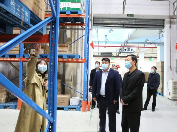 2022年4月13日上午,南陽市政協(xié)副主席李敬鐸、南陽高新技術(shù)產(chǎn)業(yè)開發(fā)區(qū)人大工作委員會副主任周明宏、南陽高新技術(shù)產(chǎn)業(yè)開發(fā)區(qū)副主任楊東杰等領(lǐng)導(dǎo)一行蒞臨我公司調(diào)研二期項目建設(shè)進(jìn)度,并實地查看中藥材倉儲中心建設(shè)情況,河南東森總經(jīng)理黎富永、東森物流園區(qū)總經(jīng)理蔡雨雷全程陪同。